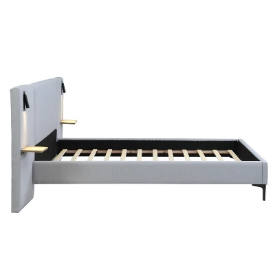 This modern upholstered bed is a perfect blend of style and functionality, featuring integrated lights and built-in shelves for added convenience. The sleek, padded headboard offers comfort and elegance, while the soft, neutral upholstery complements various bedroom decors. The integrated lighting adds a cozy, ambient glow, ideal for reading or creating a relaxing atmosphere. With shelves on either side, you can easily store essentials or display decorative items, reducing clutter and enhancing organization. This bed combines contemporary design with smart storage solutions, making it a great addition to any modern bedroom.