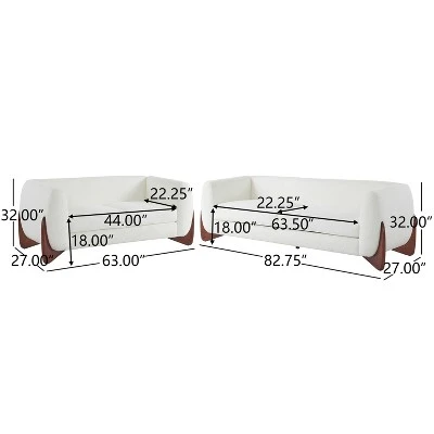 Christopher Knight Home Emma 2 Pieces Living Room Boucle Upholstered Sofa Set, Beige