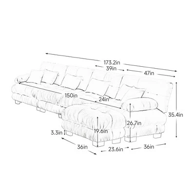 Sofa Dimensions: 36 inches deep x 173.2 inches wide x 35.4 inches high