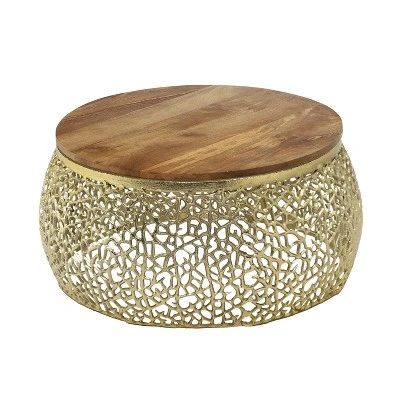 Blending modern elegance with natural beauty, this round coffee table features a sleek aluminum frame paired with a handcrafted mango wood top. The rich wood grain brings warmth and character, while the lightweight, rust-resistant aluminum offers strength and stability. Expertly crafted by skilled artisans, each piece is unique, showcasing subtle variations that highlight its handmade nature. Perfect for contemporary or transitional spaces, this coffee table adds a stylish focal point to your living room with its seamless balance of industrial charm and organic sophistication.