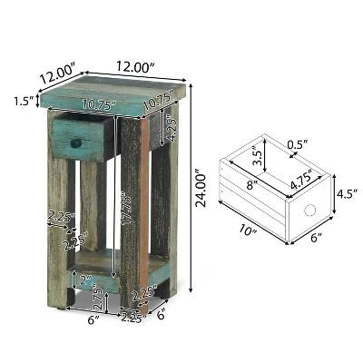 Creating an impressive look for your interior space with an exciting mix of colors. Featuring an open shelf structure and a single drawer with an iron knob, our handmade small side table is the perfect accent piece for any space and can hold a lively lamp or a tray of snacks with ease. Its stunning boatwood finish and rich mango wood build enhance your home with a one-of-a-kind aesthetic. Complemented with a purposely worn look, this unconventional end table is the perfect addition to any space.